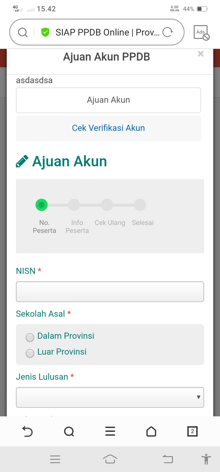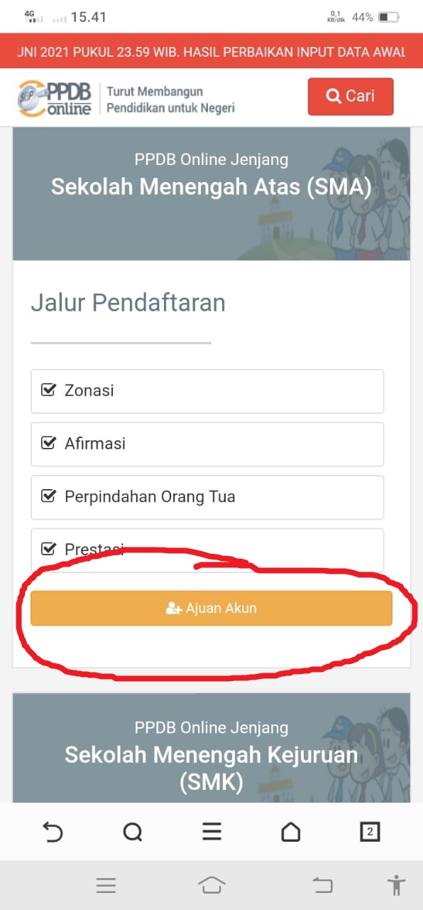 Pilih SMA lalu klik Ajuan akun