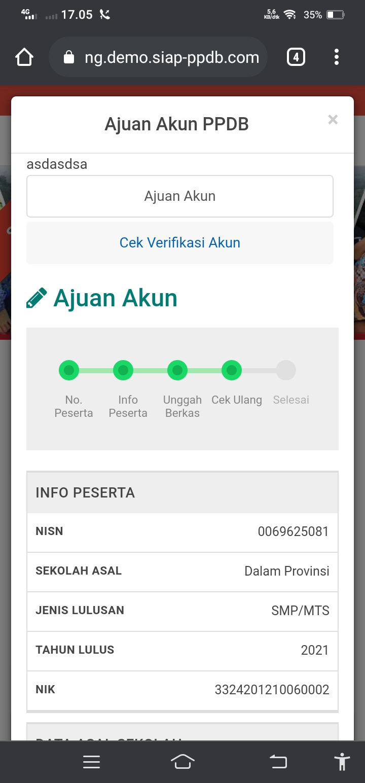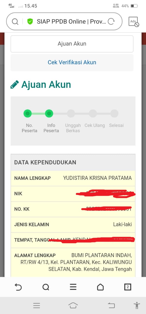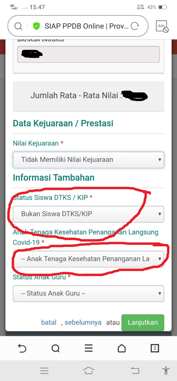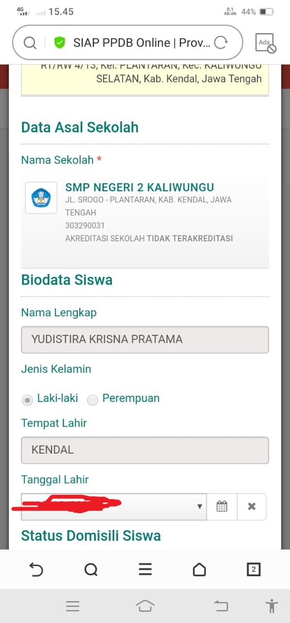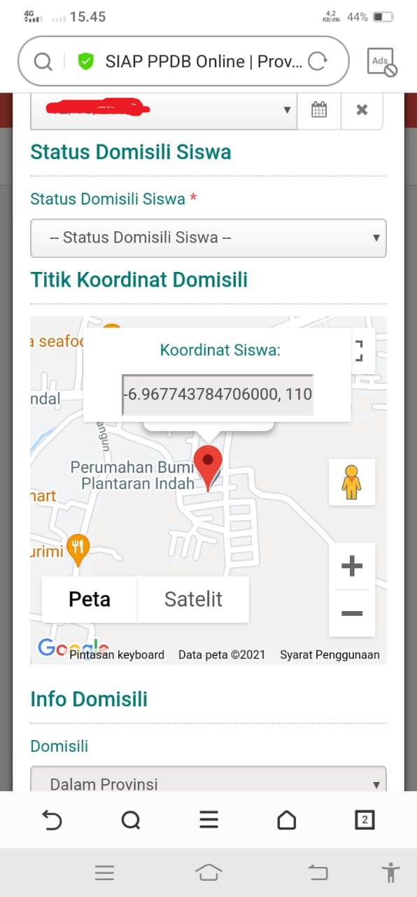 Teliti data yang ada di atas termasuk titik koordinat rumah sesuai KK, dan pastikan semua data sudah benar baru klik lanjukan, ketika data belum benar silahkan hubungi operator sekolah SMP untuk memperbaiki data agar data sesuai dan terhindar diskualifikasi.