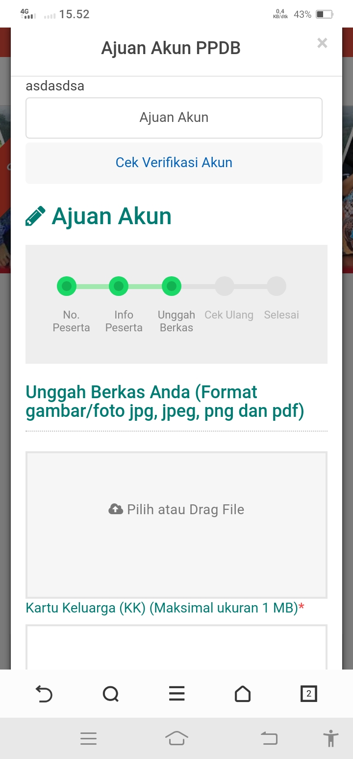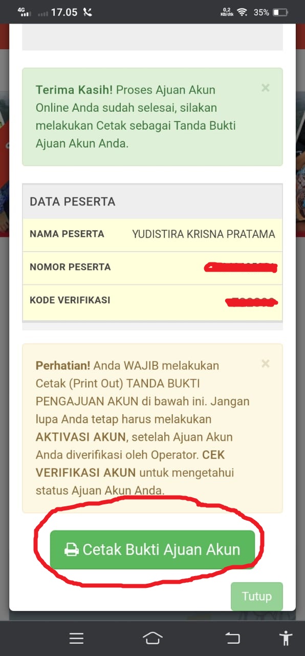 langkah terakhir silahkan cetak bukti ajuan akun, simpan berkas terdapat nomer pendaftaran dan aktivasi