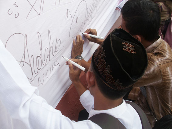 Selasa, 20 Mei 2014, adalah hari yang penting, dimana para siswa kelas XII menantikan pengumuman hasil belajarnya selama kurang lebih tiga tahun di sekolah, tepatnya adalah hasil ujian nasional. Seperti biasa, pada waktu yang bersamaan dengan adanya pengumuman kelulusan, SMA Negeri 1 Kaliwungu mengadakan pengajian kelulusan, dan tujuan khusus diselenggarakannya pengajian tersebut adalah untuk mengcover terjadinya konvoi, dan coret-coret seragam yang bisa dikatakan kurang bermanfaat. Meskipun kegiatan konvoi, dan coret-coret seragam telah diantisipasi, tetapi, hal yang masih berkesan adalah, SMA Negeri 1 Kaliwungu telah menyediakan kain putih polos panjang, berukuran sekitar 1 x 8 meter dan beberapa spidol untuk tanda tangan dan coret-coret pada kain tersebut. Karena, harapan kami adalah, seragam OSIS (yang biasanya dikenakan untuk coret-coret) kelas XII, apabila masih layak pakai, bisa disumbangkan untuk orang-orang yang membutuhkan. Gurupun berpendapat bahwa, bila nanti kain putih yang telah ditandatangani oleh siswa-siswi yang sudah lulus, maka kain tersebut bisa dijadikan kenang-kenangan untuk dipajang pada saat reuni suatu saat nanti.